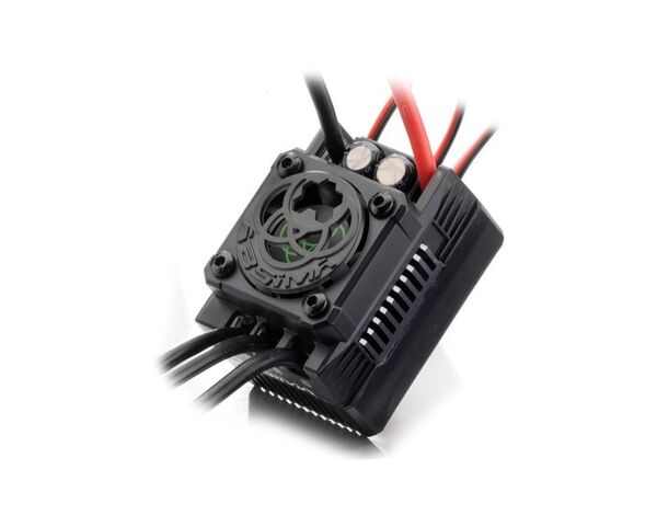 AB2110007V2 ABSIMA Brushless Regler Thrust BL ECOV2 60A 1:10 wasserdicht Highlights: • 2S & 3S LiPo einsatzbereit • Programmierbar über Set Up Knopf oder separat erhältlicher Programmierbox • Sofort fahrbereit Features Brushless Regler: • Wasserdichter 60A Regler inkl. Lüfter • 2S und 3S LiPo einsatzbereit • T-Plug Akkustecker • Motoranschluss über 3.5mm Goldkontakt Buchsen • Sofort fahrbereit (keine Konfiguration nötig) • Einfache Kalibrierung • Sensorloses System • NiMH 4 - 9 Zellen & LiPo 2 - 3 Zellen Betrieb • Überhitzungsschutz 120° • Kurzzeit Belastung 360A • BEC 7,4V/8,4V 6A (switch mode) • Betriebsspannung 4.8 – 11.1V • Spannungsabschaltung ab Werk LiPo 3.1V/Zelle (programmierbar) Technische Daten: • Maße (L/B/H): 50 x 35 x 37 mm • Gewicht inkl. Kabel: 96 g • Motorlimit: @2S LiPo / 6 Zellen NiMH = On-road < 8T / Off-road < 11T und Motorlimit @3S LiPo / 9 Zellen NiMH = On-road < 11T / Off-road < 14T Lieferumfang: • 1* Thrust ECOV2 Brushless Fahrtenregler • Bedienungsanleitung