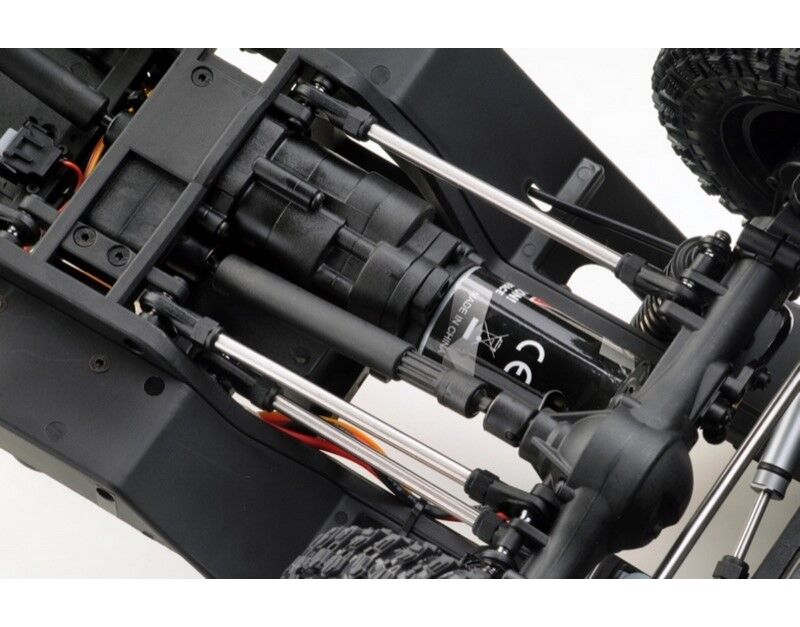 Das komplett neu konzipierte wannenartige Chassis bietet viele Vorteile! Alle elektronischen Komponenten sind leicht zugänglich, was bei der verbauten Technik dringend erforderlich ist. Das extrem flache "Low Center of Gravity" (LCG) Chassis und die dazu passende Getriebebox senken den Schwerpunkt, was besonders bei hohen Karosseriekonzepten wie unserem WOLF hilfreich ist. Die mittig platzierte Batteriebox kann dank Klettverschluss und verstellbarer Halterung perfekt an alle 2-3S LiPo und 6-7 Zellen NiMH Batterien angepasst werden. Die 11-Kanal Fernsteuerung ist notwendig, um alle technischen Features zu steuern. Die separate 3-in-1 ESC/Empfängereinheit und Lichteinheit ermöglichen zukünftige Optimierungen und Tuning.