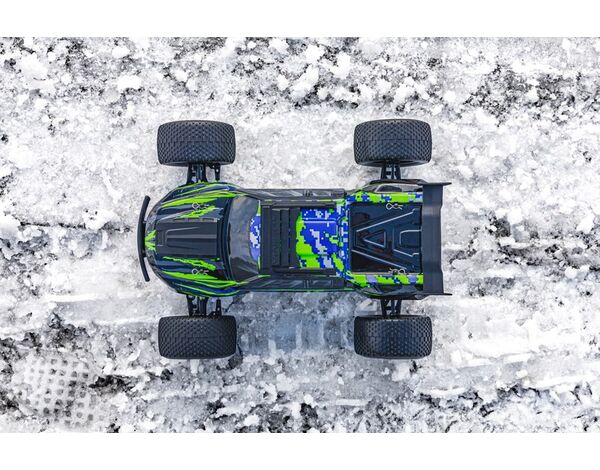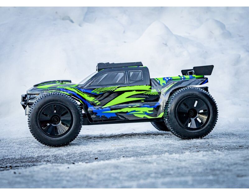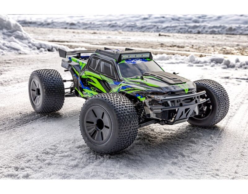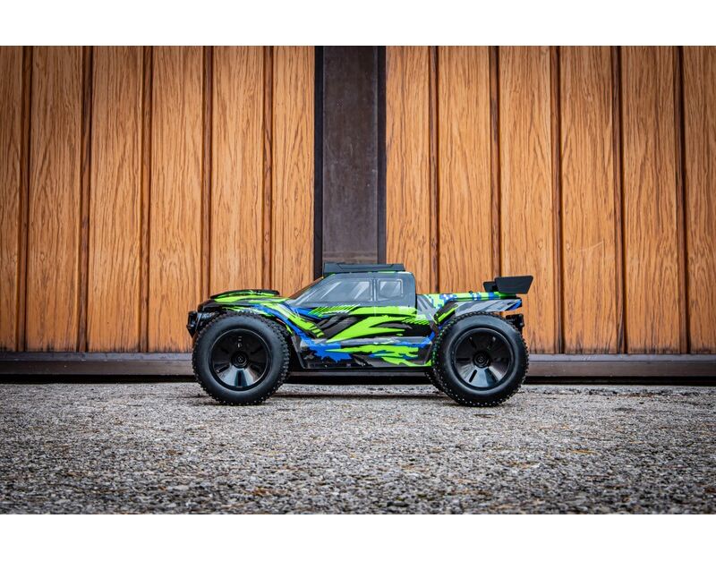 Das Auto wird von einem 540er 15T Bürstenmotor befeuert, der direkt auf den Allradantrieb zugreift. Die beiden Differentiale (vorne und hinten) werden durch eine Aluminium-Antriebswelle angetrieben. Durch die höhere Leistung des Fahrtenreglers und den Einsatz von T-Steckern kann jeder 2S LiPo-Akku verwendet werden - egal welche C-Rate und Kapazität.