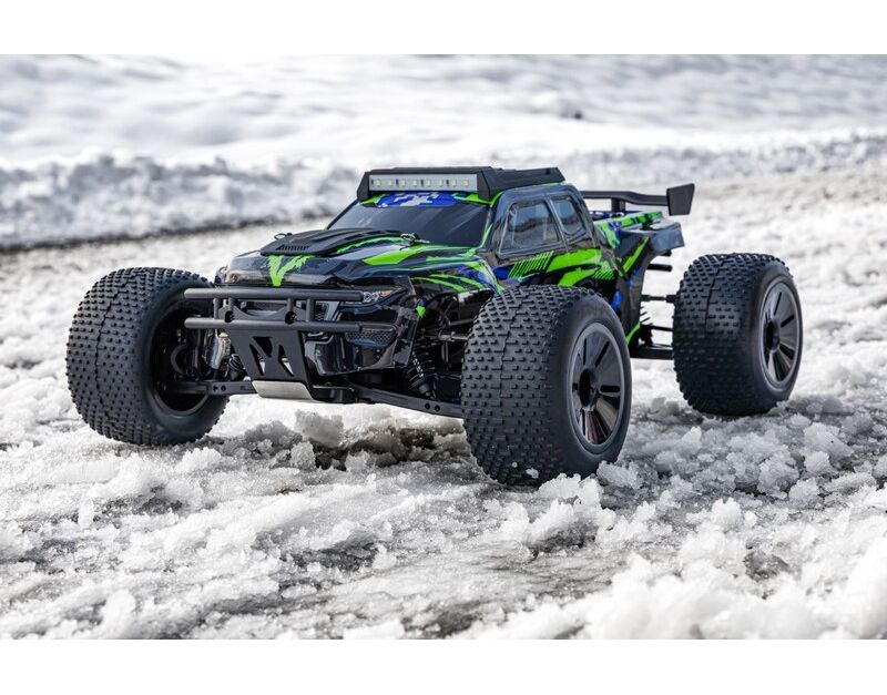 4 Öldruck-Stoßdämpfer bieten ein ideales Handling, so dass viel Fahrspaß aufkommt. Ein Servo mit 15kg Stellkraft und Metallgetriebe übernimmt die Umsetzung der Lenkbefehle.