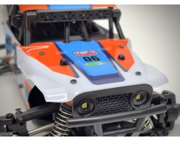 Jedes der Fahrzeuge verfügt über eine vollständig detaillierte und designte Karosserie und jeder Fahrzeugtyp hat seine gewissen optischen und technischen Vorteile. Während die Rock-Racer und Desert-Runner mit Fahrerfiguren und Ersatzrad bestechen, kommt der Race-Truggy auf extra-grossen Offroad Wheels und dickem Heckspoiler daher.