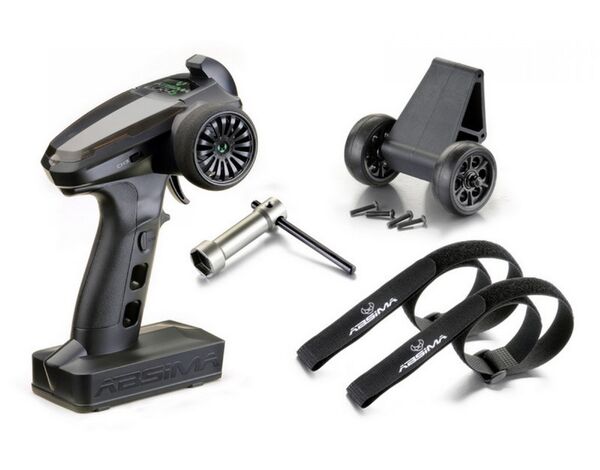 Die im Lieferumfang enthaltene ABSIMA CR4S 4-Kanal Fernsteuerung inklusive R4WP-Micro Empfänger verfügt über ein Moosgummi-Lenkrad sowie über einen „Beginner-Modus“ welcher die Motorleistung auf 50% reduziert. Außerdem stehen Dir noch 2 weitere Kanäle zur Verfügung um beispielsweise die separat erhältliche mechanische Handbremse anzusteuern.