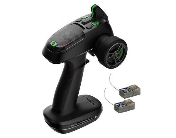 Mit der CR4S-EVO 4-Kanal Fernsteuerung und dem wasserdichtem R6WP Empfänger können preisbewusste Fahrer kostengünstig auf überlegene Reichweite, optimales Ansprechverhalten und überdurchschnittliche Störfestigkeit setzen.