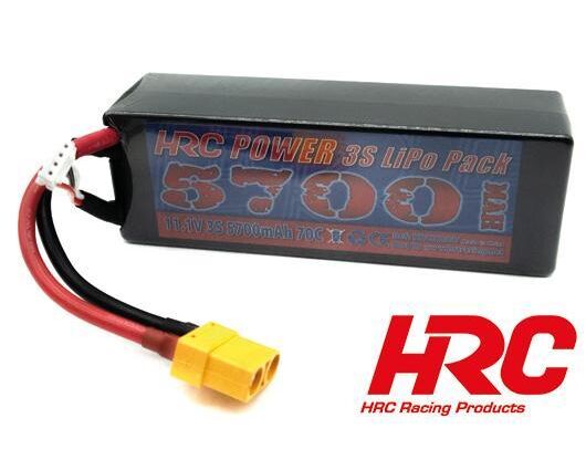 Battery - LiPo 3S - 11.1V 5700mAh 70C - RC Car - HRC 5700 - Hard Case - XT90AS 46.5*38*138.5mm