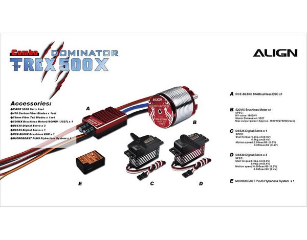 RH50E18XT ALIGN T-REX 500X Dominator Combo BEASTX