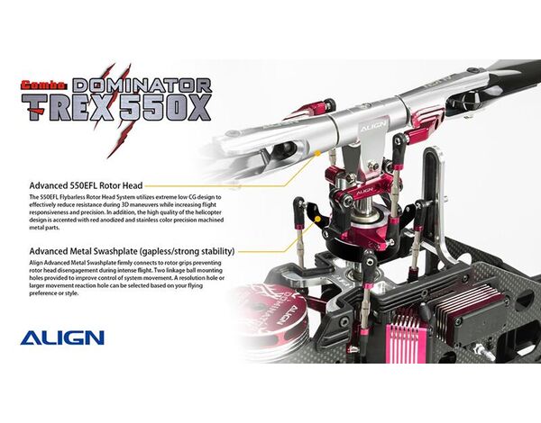 In der überarbeiteten Version besitzt der Helikopter viele Neuerungen wie zum Beispiel die extrem starken BL820 HV-Taumelscheibenservos sowie das superschnelle BL825 HV-Heckservo ihren Platz finden. Ein weiteres Highlight in diesem Modell ist das Micro BeastX Flybarless-System. Um den Schwerpunkt des Helis besser einstellen zu können ist der 6S Antriebsakku nun wie bei den Modellen der 600er, 700er und 800er Größe auf eine Akkurutsche unter die Nase des Modells verlegt worden. Mit dem T-REX 550X bleiben dem zukünftigen Piloten keine Wünsche offen.