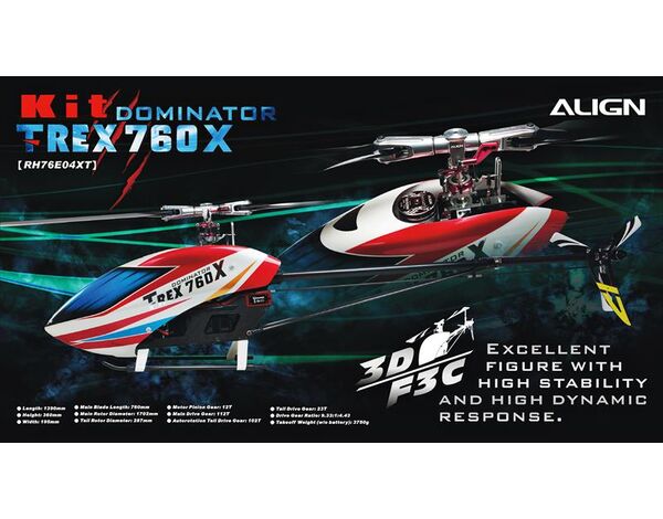 Wir haben den ultimativen, perfekten T-REX 760 Hubschrauber. Ausgestattet mit einem 850MX Brushless Dominator Motor(490KV) wie auch einem neuen 3-Blatt Heckrotor.