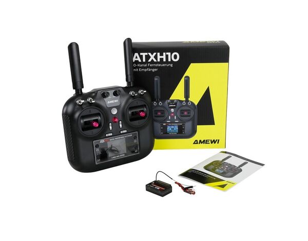 Amewi Fernsteuerung Set ATXH10 10-Kanal Fernsteuerung mit Empfänger für Flug- und Funktionsmodelle