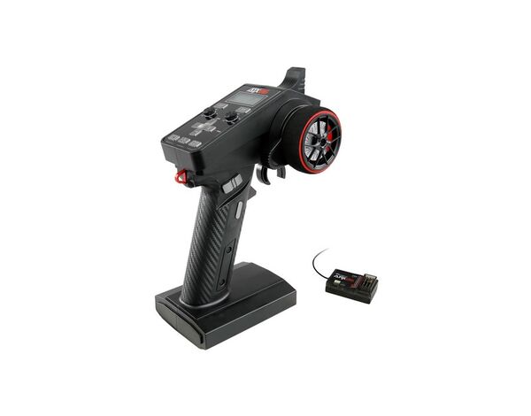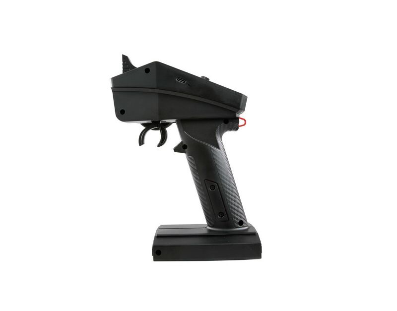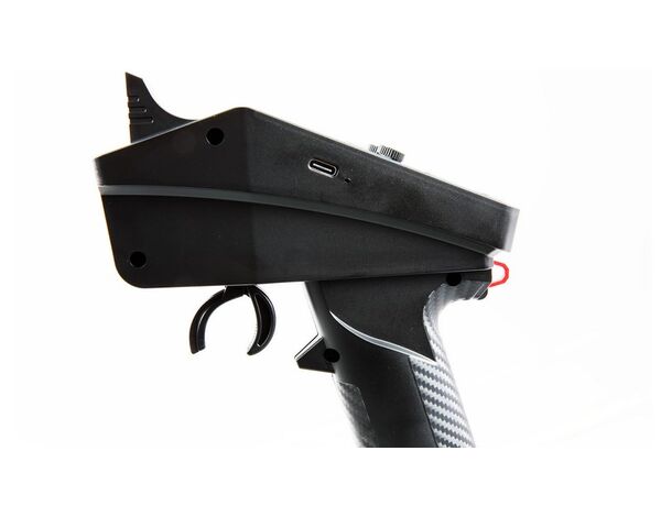 Eine Dual-Rate-Funktion für Gas und Lenkung erweitert die Anpassungsmöglichkeiten. Die Servorichtung für Lenkung und Gas ist umkehrbar, und für eine komfortable Einhandbedienung ist ein zusätzlicher Hebel am Lenkrad angebracht. Über den USB-C-Anschluss lässt sich das System aktualisieren oder für Simulatoren nutzen.