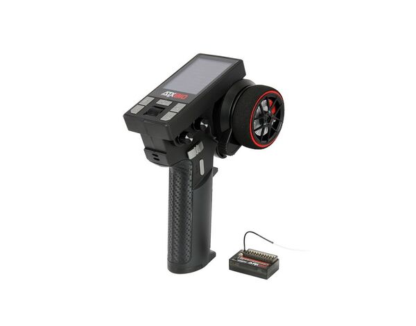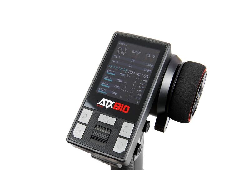 Die 10-Kanal Pistolenfernsteuerung ATXB10 bietet zahlreiche Funktionen und ist dennoch einfach zu bedienen. Alle Kanäle sind programmierbar, es gibt einen Speicher für bis zu 8 Modelle sowie ein großes Farbdisplay, das eine klare Übersicht bietet. Zusätzlich verfügt die Fernsteuerung über Mischfunktionen für diverse Kanäle, um eine flexible Steuerung zu ermöglichen. Eine integrierte Telemetrie-Funktion zeigt die Akkuspannung des Modells bzw. der Empfängerstromversorgung in Echtzeit direkt auf dem Display an. Weitere praktische Features umfassen eine Dual-Rate-Einstellung für Gas und Lenkung sowie die Möglichkeit, die Servorichtung für alle Kanäle individuell anzupassen. Für eine bequeme Einhandbedienung wurde ein zusätzlicher Hebel am Lenkrad integriert. Über den USB-C-Anschluss kann das System einfach aktualisiert werden oder beispielsweise für Simulatoren genutzt werden. Die Bedienung der Fernsteuerung erfolgt über Gas, Lenkung, einen Drucktaster am Griff (SWB), einen Drei-Wege-Schalter über dem Griff (SWA) sowie vier Tasten an der Oberseite. Die digitale Trimmung speichert alle Einstellungen dauerhaft, auch wenn die Fernbedienung aus- und wieder eingeschaltet wird. Ein weiteres Sicherheitsmerkmal ist die automatische Abschaltfunktion, die nach 15 Minuten ohne Eingabe aktiv wird. Der Sender gibt dabei eine Minute vorher einen Piepton aus, bevor er sich ausschaltet, um die Batterie zu schonen. Als zusätzliches Feature ist ein integriertes Autorennspiel verfügbar, das über Lenkung und Gas der Fernsteuerung gesteuert wird, während das Display als Bildschirm für das Spiel dient.