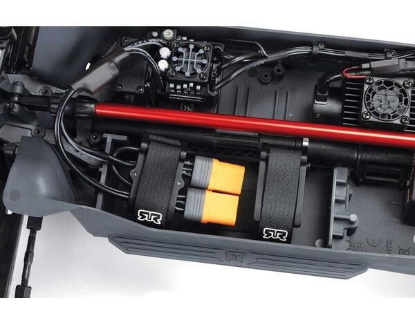 Separate, leicht abnehmbare Chassismodule für das Antriebsssystem, die Elektronik und die Differentialkomponenten machen die routinemäßige Wartung schnell und einfach. Das KRATON 4S BLX Chassis wurde aktualisiert, um ein Mitteldifferentialmodul aufzunehmen, und verfügt jetzt außerdem über eine Hinge-Pin-Brace und einen Schmutzablass.