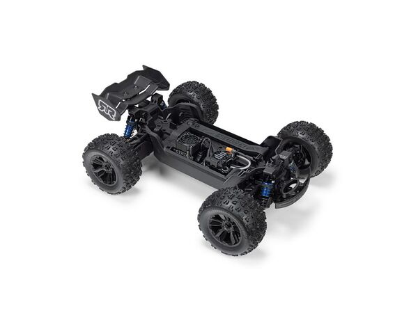 Hinter dem kompakten Design steckt die volle Stärke von ARRMA. Das MINI-Chassis ist mit verstärkten Komponenten und robusten Stoßfängern ausgestattet, die dir die Freiheit geben, wild zu fahren, ohne dir Sorgen machen zu müssen. Die brutale Karosserie kommt werksseitig mit auffälliger Lackierung ausgeliefert und mit einem praktischen clipless Schnellwechselsystem – für schnelle Boxenstopps.