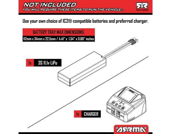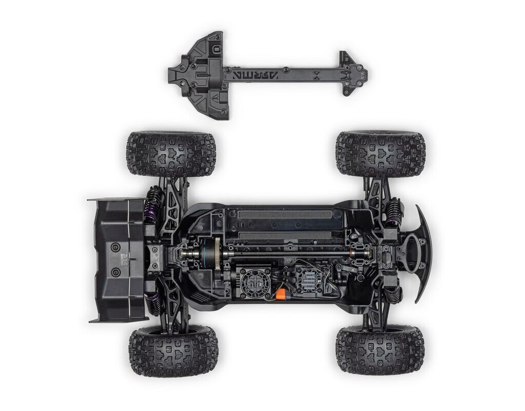 Hinter dem kompakten Design steckt die volle Stärke von ARRMA. Das MINI-Chassis ist mit verstärkten Komponenten und robusten Stoßfängern ausgestattet, die dir die Freiheit geben, wild zu fahren, ohne dir Sorgen machen zu müssen. Die brutale Karosserie kommt werksseitig mit auffälliger Lackierung ausgeliefert und mit einem praktischen clipless Schnellwechselsystem – für schnelle Boxenstopps.
