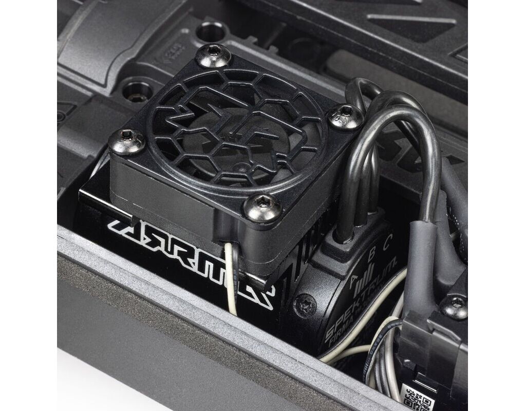 Im Inneren arbeitet ein Spektrum-Brushless-System, das für maximalen Spass pro Quadratzentimeter abgestimmt ist. Der MINI KRATON beschleunigt kraftvoll, steckt harte Stöße weg und bleibt auf Asphalt, Schotter, Gras und Erde stabil. Wasserdichte Elektronik sorgt dafür, dass der Spaß auch durch Pfützen und Schlamm weitergeht. Jeder Druck auf den Abzug erinnert dich daran: Das mag der kleinste KRATON sein, der je gebaut wurde, aber er ist definitiv nicht zu unterschätzen. Die Spektrum SLT-Fernsteuerung bietet dir hilfreiche Kontrolle, während du deine Fähigkeiten ausbaust. Nutze den Gaswegbegrenzer für eine sanftere Lernkurve oder schalte ihn ab, sobald der PowerKey aktiviert ist, und lass den MINI KRATON zeigen, was in ihm steckt. Dank der DSC-Funktion mit 4 wählbaren Modi wird die Lenkung automatisch korrigiert, sodass du je nach Vorlieben und Können mühelos Stunts ausführen kannst.