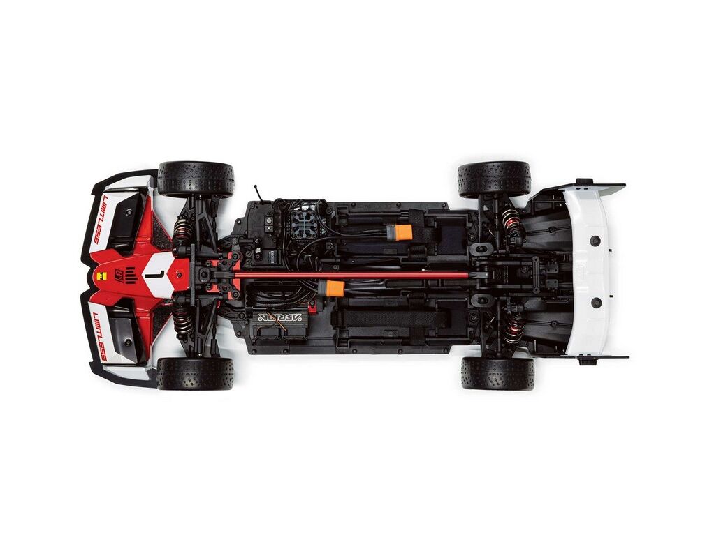 Die werkseitig lackierte Low-Drag-Karosserie kommt in aggressiven Farbschemata, die selbst im Stand schnell aussehen. Mit den Wing-Trim-Linien kannst du den Abtrieb reduzieren, wenn du maximale Geschwindigkeit willst, während der durchgehende Frontsplitter und der große Heckdiffusor dem Luftwiderstand zeigen, wo es langgeht.