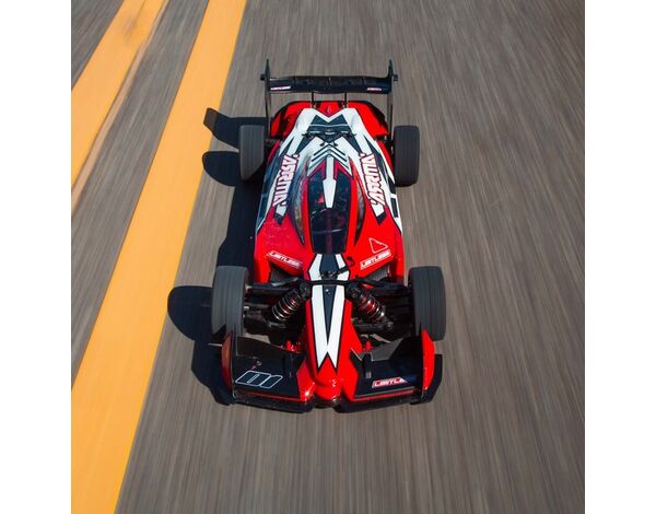 Tatsächlich hat sich der LIMITLESS 1/7 All-Road Speed Bash Roller in einem Kopf-an-Kopf-Rennen mit dem echten Weltmeisterauto, dem Red Bull Racing RB7 Formel-1-Boliden, als Sieger durchgesetzt. Er erreichte Geschwindigkeiten von bis zu 241 kmh und durchlief die Viertelmeile in nur 8,6 Sekunden!