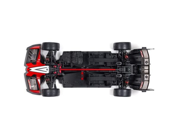 Die 39T Mod 1.0- Spool mit langem hinteren Outdrive sorgt mit einer kürzeren hinteren Mittelantriebswelle für gleich lange Mittelantriebswellen und damit für weniger Antriebsstrangvibrationen. Steifere vordere Federn und Stabilisatoren verbessern das Handling bei hohen Geschwindigkeiten, und eine breitere hintere Spur erhöht die Stabilität.
