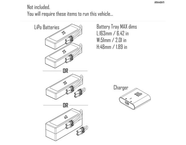 Ein LiPo-Akku und ein Ladegerät sind alles, was du benötigst, um den 1/8 ARRMA MOJAVE 4S BLX 4X4 fertigzustellen. Greif dir deinen vollen LiPo und stelle dich mit robustestem Material härtestem ARRMA-Bashing im Desert-Truck-Stil!