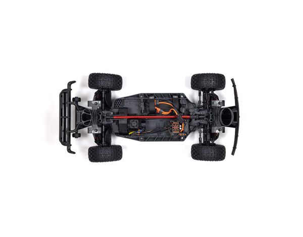 Wenn du Hobby Einsteiger bist, kannst du die Gaswegbegrenzung der mitgelieferten 3-Kanal-Spektrum SLT3™-Fernsteuerung auf 50 % oder 75 % einstellen, bis du bereit bist, das volle Geschwindigkeitspotential auszuschöpfen. Dann ziehe den Gashebel durch und lass Sand und Staub fliegen. Der ARRMA MOJAVE 4S BLX 4X4 Desert Truck ist mehrfach gegen Schmutz und Ablagerungen geschützt – darunter Querlenker Dirtguards, Abweiser am Chassis und an den Outdrives und vor allem an der Innenkarosserie für besseren Schutz vor Steinen.