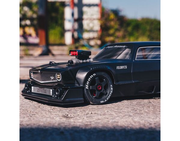 Inspiriert von den Muscle-Cars, die die amerikanische Autoindustrie in den 60er und 70er Jahren prägten, rundet der FELONY™ 6S BLX 4WD RTR im Maßstab 1:7 eine robuste und leistungsstarke ARRMA® Brushless-Plattform mit atemberaubendem Retro-Stil ab - ideal für Fahrer der mittleren Leistungsklasse, die gerne Street-Bashing oder Drag Racing bei Geschwindigkeiten von über 80 MPH erleben möchten (unter optimalen Bedingungen mit einem 6S LiPo und dem mitgelieferten Speed-Ritzelgetriebe möglich). Mit seiner schnittigen Muscle-Car-Karosserie und den großen Hinterreifen sieht der FELONY™ 6S BLX wie zu Hause aus, wenn er bei hohen Geschwindigkeiten auf der Straße, über unbefestigte Straßen und auf ovalen Pisten strahlt.