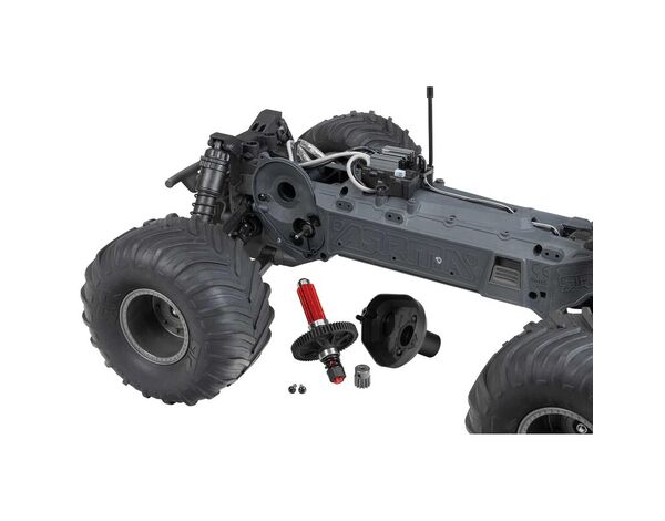 Pflüge mit dem GORGON MT über übelste Tracks. Die bewährte ARRMA-Technik verleiht dem Verbundwerkstoff-Chassis eine unglaubliche Haltbarkeit. Die Einzelradaufhängung, die ölgefüllten Stoßdämpfer und die einstellbare Fahrhöhe sorgen im Zusammenspiel für eine ausgewogene Balance selbst im unwegsamsten Gelände. Für unaufhaltsame Traktion überträgt das 2WD-Getriebe des ARRMA GORGON MT-Monstertrucks die Kraft vom MEGA 550-Motor auf massive dBoots® Chevron-Gummireifen auf stabilen Nylonfelgen. Sein bärenstarkes Getriebe ist robust genug, um es auch mit Brushless Power aufzunehmen.