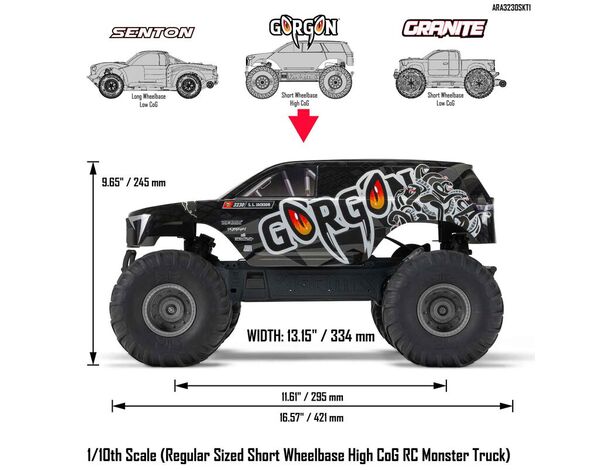 1/10 GORGON 4X2 MEGA 550 Brushed Monster Truck RTA Kit
