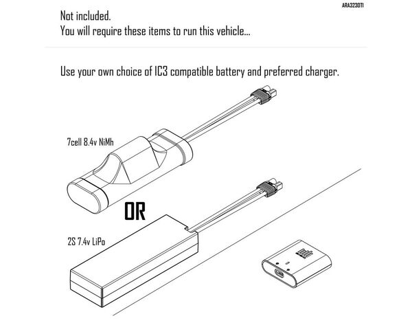 7-Zellen NiMH oder 2S LiPo Akku mit IC3/EC3 Anschluss