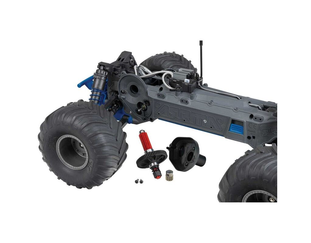 Wofür du dich auch immer entscheidest, der GORGON MT ist so konzipiert, dass du überall auffällst wo du basht! Direkt nach dem Auspacken zieht seine auffallende Optik die Menge in seinen Bann. Die Karosserie ist werkseitig in Blau gehalten und verfügt über ein farblich abgestimmtes Akkufach, Stoßdämpferfedern, Unterfahrschutz sowie Bumper vorne und hinten, die Stöße abhalten und dabei helfen, die Optik zu bewahren.