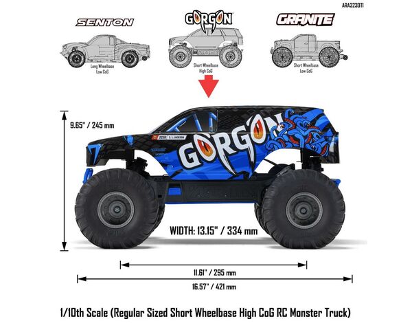 1/10 GORGON 4X2 MEGA 550 Brushed Monster Truck RTR