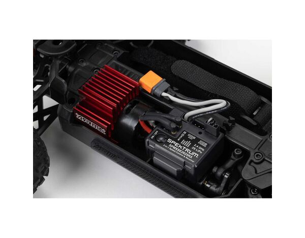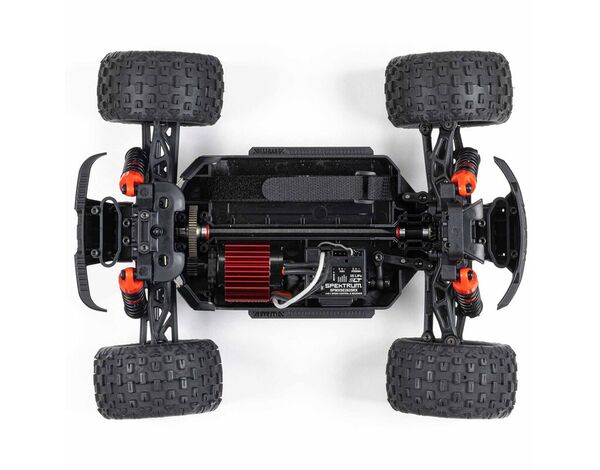 Der ARRMA GRANITE GROM 4X4 Monster Truck ist geschaffen, deinem Bashing standzuhalten. Stoßabsorbierende Bumper vorne und hinten schützen wirkungsvoll das robuste Verbundwerkstoff-Chassis. Ein 4WD-Getriebe mit robuster Metallverzahnung überträgt die Kraft des MEGA 380-Bürstenmotors über einen geschlossenen Antriebsstrang auf die dBoots® FORTRESS™-Monstertruck-Felgen und -Reifen. Sogar das Spektrum™ SX110 Lenkservo verfügt über Metallgetriebe – und ist, wie die mit einem IC2®-Anschluss ausgestattete Spektrum SLT™ 2-in-1 25A-Regler/Empfängereinheit, wasserdicht und sorgt für unbeschwertes Bashen unter allen Bedingungen.