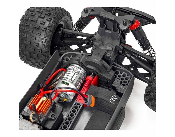 Er verfügt über das bewährte und geniale modulare Chassis design, das von den ARRMA-Ingenieuren perfektioniert wurde, um den Zugang zu den Komponenten zu erleichtern. Einzelne, leicht demontierbare Module für den Antrieb, die Elektronik und die Differentiale machen die routinemäßigen Wartungsarbeiten am Modell schnell und einfach.