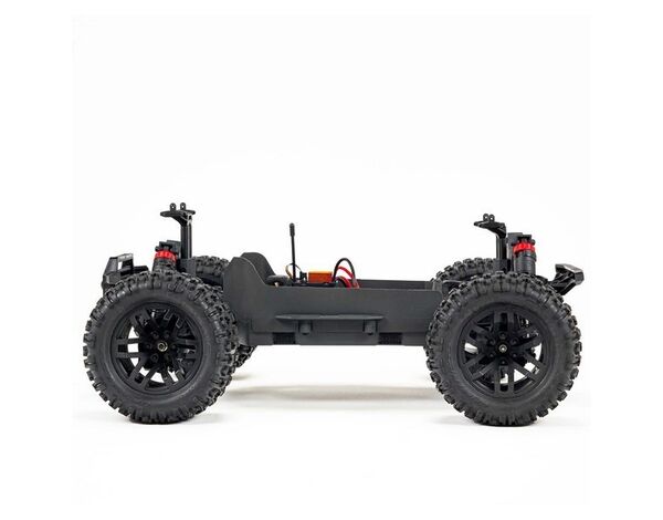 Die selbstentlüftenden, ölgefüllten Stoßdämpfer mit Silikon-O-Ringen verwenden ein bewährtes Gewindefahrwerk für mühelose Wartung und erstaunliches Handling. Ihr innovativer Gelenkkopf verfügt über einen eingegossenen Federteller für zusätzliche Robustheit. Hohe Seitenteile am Chassis begrenzen die Menge an Schmutz und Ablagerungen, die in die Chassis Wanne gelangen können und ein seitlicher Aufprallschutz schützt Karosserie und Chassis. Stoßdämpfende Schlaufen halten die vorderen und hinteren Bumper am Chassis und bieten zusätzlichen Schutz vor schweren Stößen.