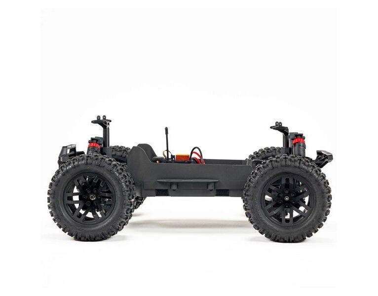 Zur unaufhaltsamen Leistung des GRANITE™ 4X2 BOOST Monster Trucks tragen sein bärenstarkes Kunststoff-Chassis, eine Lenkung mit mehr Bodenfreiheit für Steine, ein verzahntes Slipper-Pad und ein Getriebe mit gleitendem Zahneingriff sowie gummigeschützte Lager bei. Hochgezogene Seitenteile am Chassis begrenzen die Menge an Schmutz und Ablagerungen, die in die Chassis Wanne gelangen können.