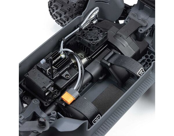 Hochwertige, wasserdichte Spektrum-Elektronik ermöglicht sorgenfreies Bashing unter allen Bedingungen. Die 40A SLT 2-in-1 Regler/Empfängereinheit ist LiPo-fähig. Für präzise Lenkung hat ARRMA ein leistungsstarkes S661 Digital Servo mit Metallgetriebe verbaut, das bei 6V über ein Drehmoment von 125 oz-in verfügt.