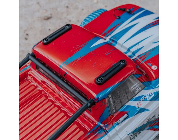 Die charakteristische INFRACTION™ Resto-Mod-Karosserie bietet klassischen Truck-Look für Allroad-Bashing. Sie ist werkseitig in atemberaubenden Rot/Blau- oder Türkis/Bronze-Farbschemen erhältlich und trägt Roof Skids und einen Überrollbügel.