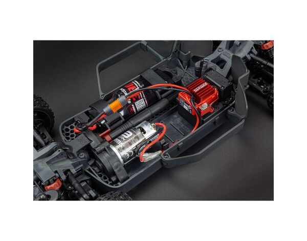 Für eine präzise und zuverlässige Kontrolle haben die ARRMA®-Ingenieure dieses RTR Set mit der 2,4-GHz-Spektrum™ SLT3™-Fernsteuerung und dem SLR300-Empfänger ausgestattet. Der Sender ist ergonomisch für langes ermüdungsfreies Bashing ausgelegt und verfügt über ein Schaumstoffrad um präzises Fingerspitzengefühl zu ermöglichen und einen verbesserten Griff und Gashebel für bessere Gaskontrolle. Neue Fahrer können Gaslimits auf 50 % oder 75 % einstellen, bis sie bereit sind, das volle Geschwindigkeitspotenzial auszuschöpfen. Die SLT3™ ist mit Tactic® SLT™-Empfängern kompatibel, um auch andere RTR-Fahrzeuge betreiben zu können, die du möglicherweise besitzt. Darüber hinaus verfügt sie über einen dritten Kanal zur Steuerung optionaler Funktionen wie Beleuchtung oder Winden bei anderen Fahrzeugen, die über diese Funktionen verfügen.