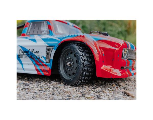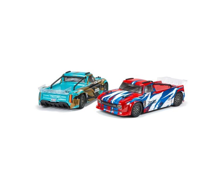 Abgerundet wird das fahrbereite Chassis durch eine atemberaubende Truck-Karosserie, die in Rot/Blau oder Türkis/Bronze bedruckt ist. Roof Skids und Überrollbügel bewahren das markante Finish der Karosserie, während du mit Allroad-Bashing beschäftigt bist. Der ARRMA® INFRACTION™ 4X4 MEGA Street Bash Resto-Mod Truck wird komplett mit einem Dynamite® 7-Zellen 8,4V NiMH-Akku und einem Steckdosenladegerät geliefert. Setze nur einfach vier „AA"-Batterien in die Fernsteuerung ein und los geht's!