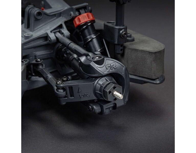 Die ölgefüllten Stoßdämpfer verfügen über Silikon-O-Ringe und sind mit Gewinde versehen, um eine einfache Einstellung der Fahrhöhe zu ermöglichen. In Kombination mit der vorderen und hinteren Doppelquerlenker-Aufhängung, den vorderen und hinteren Stabilisatoren und dem großen Heckdiffusor verleihen sie dem INFRACTION ™ 4X4 Mega Street Bash Resto-Mod Truck RTR das ultimative Allroad-Handling.