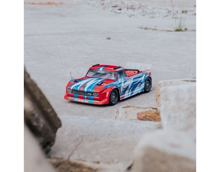 Die charakteristische INFRACTION™ Resto-Mod-Karosserie bietet klassischen Truck-Look für Allroad-Bashing. Sie ist werkseitig in atemberaubenden Rot/Blau- oder Türkis/Bronze-Farbschemen erhältlich und trägt Roof Skids und einen Überrollbügel.