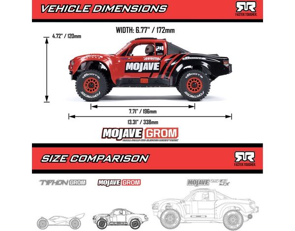 MOJAVE GROM MEGA 380 Brushed 4X4 Small Scale Desert Truck RTR with Battery & Charger, Red/Black