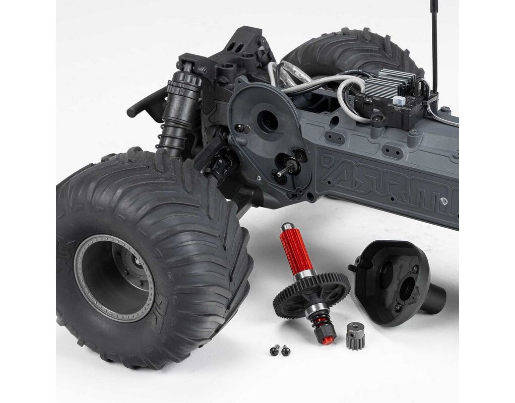 Mit ein wenig Erfahrung kannst du deinen ARRMA GORGON MT zu einem noch heftigeren RC-Bashing-Biest ausbauen. Nutze die 2S LiPo-kompatible Spektrum-Elektronik, um das Monster mit LiPo-Power zu versorgen. Setze einen eigenständigen Empfänger ein (Spektrum empfohlen), um mit Spektrum Firma™ Smart Brushless ESC/Motor Combos auf Brushless aufzurüsten. Blase den GORGON MT nach Belieben auf und lasse diesen RC-Monstertruck brüllen.