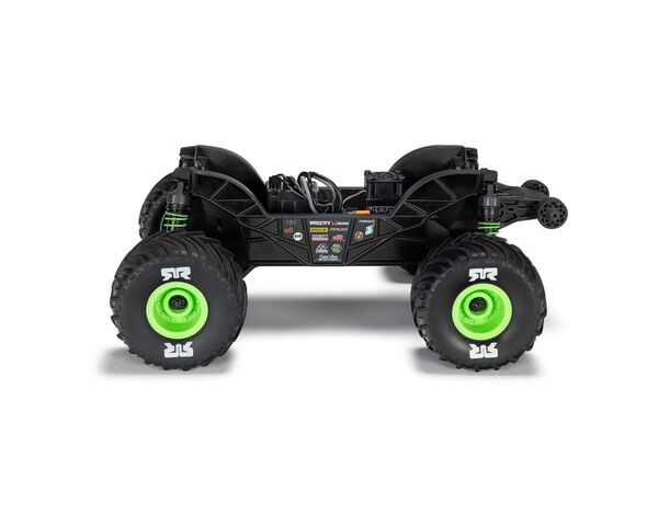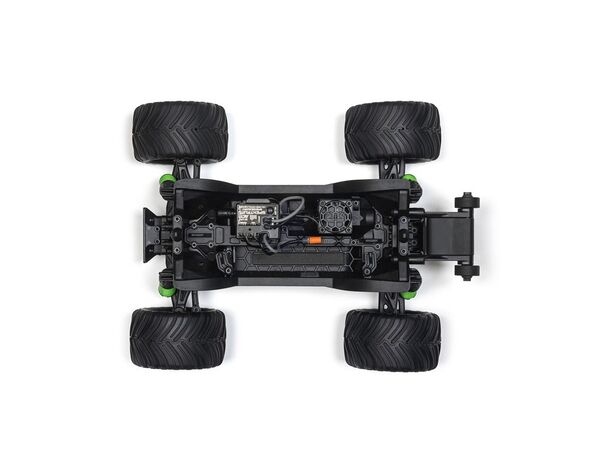 Das Fahrwerk des QUAKE GROM ist darauf abgestimmt, Sprünge zu meistern, sicher zu landen und direkt weiterzufahren. Hochwertige Stoßdämpfer mit großem Federweg schlucken Unebenheiten und Sprünge mühelos. Das tiefe Rohrrahmenchassis hält Steine und Schmutz fern, sodass du dich voll aufs Bashing konzentrieren kannst, ohne dir Gedanken über Hindernisse zu machen. Der hohe Schwerpunkt verleiht dem QUAKE GROM die typische Monster-Truck-Haltung, mit der er mühelos über Kieshaufen und Dreckberge hinwegkommt. Ob Einfahrt, Schotterplatz oder eine leere Garage – der QUAKE GROM meistert alles. Und dank seiner kompakten Größe kannst du auch drinnen Spaß haben, wenn das Wetter mal nicht mitspielt.