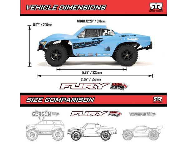 ARA3221ST2 Arrma SC.TRUCK FURY 1:10 2WD EP RTR MEGA 550- Blue