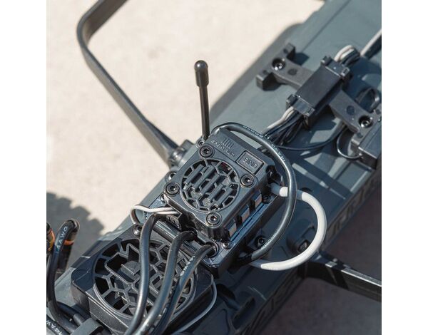 Die Einzelradaufhängung, die ölgefüllten Stoßdämpfer und die einstellbare Fahrhöhe sorgen zusammen für eine ruhige Straßenlage auf unebenem Gelände. Metallzahnräder im Differential übertragen die Kraft zuverlässig vom Motor auf die geländegängigen dBoots Fortress SC-Reifen für unaufhaltsame Traktion. Die hochwertige integrierte Spektrum-Elektronik ist wasserdicht, sodass du unabhängig von den Bedingungen sorgenfrei bashen kannst.