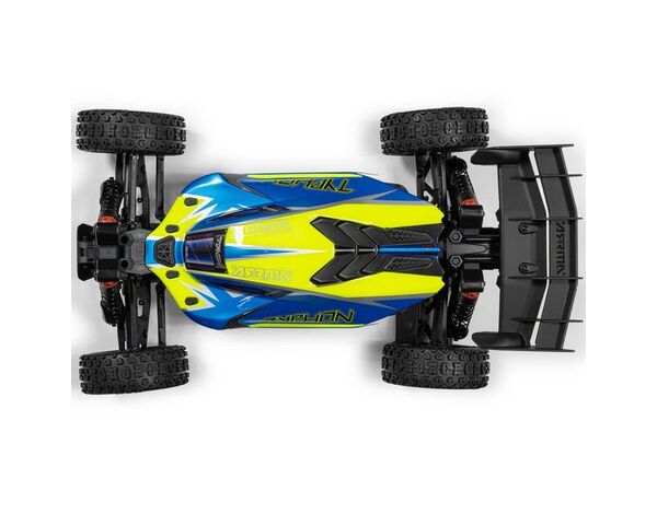 Die Karosserie des TYPHON MEGA 665 4x4 Racing Buggys wird durch ein verstecktes, Clipless-Befestigungssystem sicher an ihrem Platz gehalten. Die Karosserie ist in verschiedenen kräftigen, werkseitig lackierten Farben erhältlich und verfügt über einen High-Downforce-Flügel.