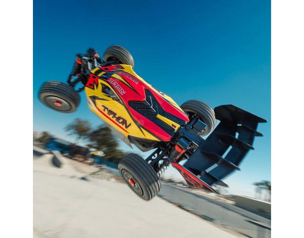 Arrma 1/8 TYPHON V4 MEGA 665 Brushed 4WD Speed Buggy RTR Int, Gelb EC3 Stecker SLT Fernsteuerung Ohne Fahrakku - Ladegerät