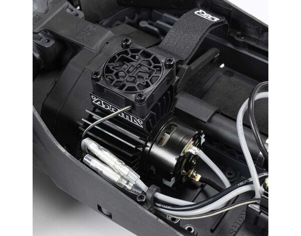 Das robuste Chassis ist belüftet, um die integrierten Komponenten kühl zu halten. Große Side-Guards bieten zusätzlichen Schutz vor Schmutz und Sand. Die integrierte, monochrome Elektronik sorgt für eine ansprechende Optik, und die Akkugurte lassen sich für einen 2S-Hardcase-LiPo-Akku Deiner Wahl anpassen.