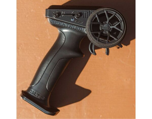 Der mitgelieferte Spektrum SLT2 Sender ist perfekt für ermüdungsfreies Bashing ausbalanciert und verfügt über ein Schaumstoff-Lenkrad für präzise Fingerspitzensteuerung. Weniger erfahrene Basher können den Gaswegbegrenzer auf 50 % oder 75 % einstellen, bis sie das volle Geschwindigkeitspotenzial des Buggys entfesseln möchten.