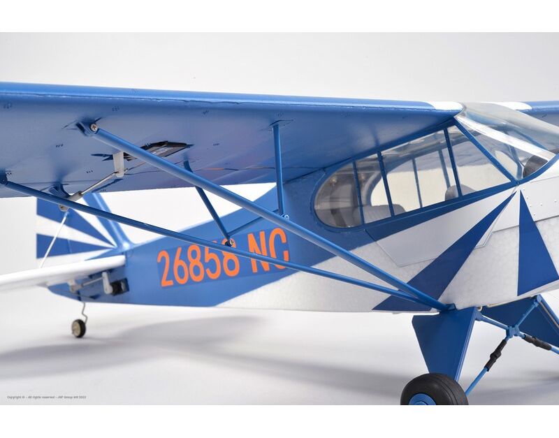 Die Piper Cub J3 verfügt über viele maßstabsgetreue Details wie ein zweiflügeliger Propeller, Flügelstreben sowie Triebwerks- und Fahrwerkskomponenten. Mit diesen Details kommt das Modell J3 schon sehr nah an das Aussehen des Originals heran. Ein Scale-Look der einfach jeden begeistert.