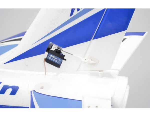 Angetrieben von einem 2840er Motor, einem 40A ESC und einer 11-blättrigen 64mm EDF-Einheit, liefert der Marlin reichlich Leistung und erzeugt einen aufregenden Motorton während Ihrer Flüge. Der Zusammenbau ist ein Kinderspiel, da das verschraubte Design die Steifigkeit des Rumpfes erhöht und die Bauzeit verkürzt. Das voll fliegende Höhenleitwerk sorgt für präzise Nickbewegungen, während die Kugelanlenkungen eine sanfte Flächensteuerung ermöglichen.